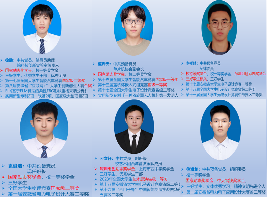 三年来,在学院领导的关心关怀下,在辅导员、班主任及全体同学的努力下,自201班抓引领、固根基、正风气、蕴内涵,打造了一个有信念底色、有担当本色、有发展成色、有青春亮色的集体。班级入党申请书提交率100%,入党积极分子26人,预备党员10人,均为全院最高。班级连续3年获得“先进班集体”、“五四红旗团支部”等荣誉称号。班级同学发表EI学术论文1篇,在各类科技竞赛中获国家级奖项10项,省级奖项30项,校级奖项100余项,软著专利10项,国家级大创6项,省级大创10项。班级四级通过率100%,计算机省二级通过率100%,今年,自动化专业推免名额共6个,6个名额全部花落该班。三年来班级同学0处分、0违纪、0安全事故,0学籍处理。