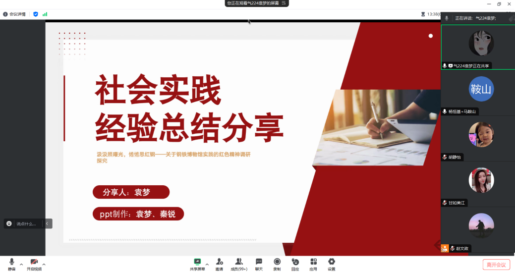 启动仪式上,甘如美江根据校团委的工作安排,向参会同学详细介绍了本次寒假社会实践的总体原则、实践内容,鼓励同学们积极参加实践队伍,在实践中了解国情、观察社会、砥砺品格,立志做有理想、敢担当、能吃苦、肯奋斗的新时代好青年。杨恒基结合社会实践稿件的撰写和照片的拍摄技巧进行了专题培训,鼓励同学们带着问题去开展调研,用高质量的稿件、照片、视频、调研报告促实践,并提醒同学们在实践过程中要把安全放在首位,注意人身安全和财产安全。随后,学院暑期社会实践优秀学生代表袁梦做交流分享,从社会实践选题背景、调研过程和调研方法、报告撰写与视频制作等多个方面进行介绍,并结合自身经验为寒假社会实践队员答疑解惑。