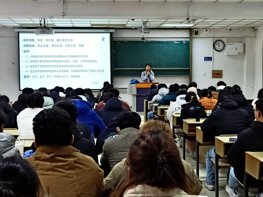 测控技术与仪器专业方挺老师的《测控系统原理与设计》,通过讲授测控系统的学科地位、作用和基本组成部分,带领同学们深刻领悟设计测控系统对高端装备制造产业的重要意义。电气工程及其自动化专业汪小平老师的《电力系统继电保护》,依据课程大纲进行说课,强调了课程考核、课程目标、毕业要求和培养目标之间的关系,从电力系统安全稳定运行的角度鼓励同学们学好该课程。