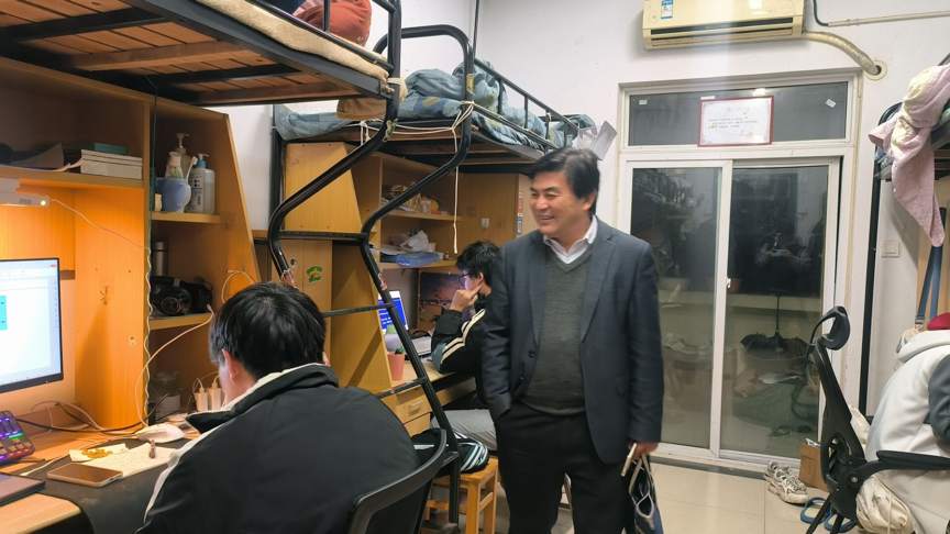 会议结束后学院领导及老师对学生宿舍进行了全面检查。对宿舍卫生、用电安全进行了细致检查,对发现的问题当场提出整改意见,要求相关同学立即整改或限期整改。在检查过程中,老师与同学们亲切交流,强调良好宿舍环境对学习和生活的积极影响,同时对宿舍存在的安全隐患进行了排查和指导。