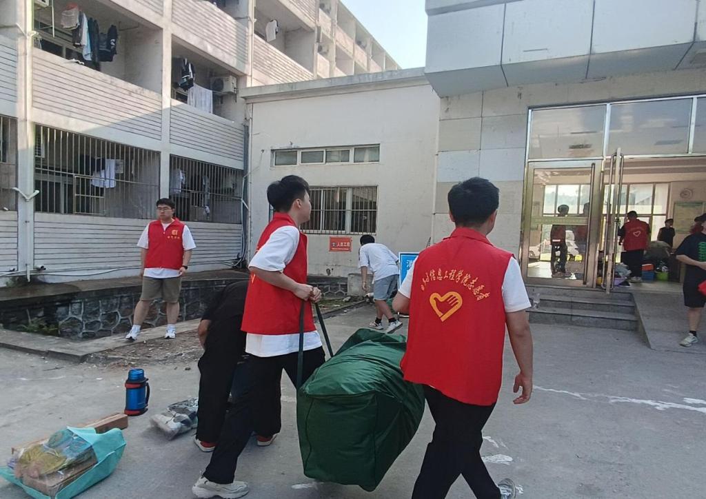 活动当天,支部全体党员早早来到新生宿舍楼前,以饱满的热情投入到服务工作中。他们分工明确,协作默契,主动帮助学弟学妹搬运行李,指引他们熟悉宿舍和校园环境。部分党员给学弟学妹们分享了新校区生活经验和注意事项,化解了他们初入新环境的紧张与不安。