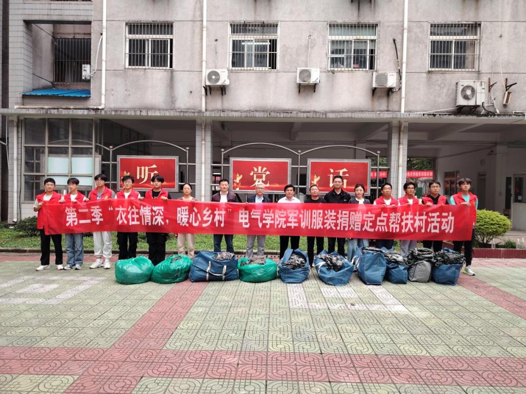 为弘扬勤俭节约的传统美德,以实际行动助力学校定点帮扶村的发展。10月13~15日,电气与信息工程学院在佳山校区开展第二季“衣往情深,暖心乡村”军训服装捐赠定点帮扶村活动。校工会正处级干部胡卫东、学院党委副书记、纪委书记、副院长李克明等出席,活动由学生测控党支部书记杨恒基主持。
