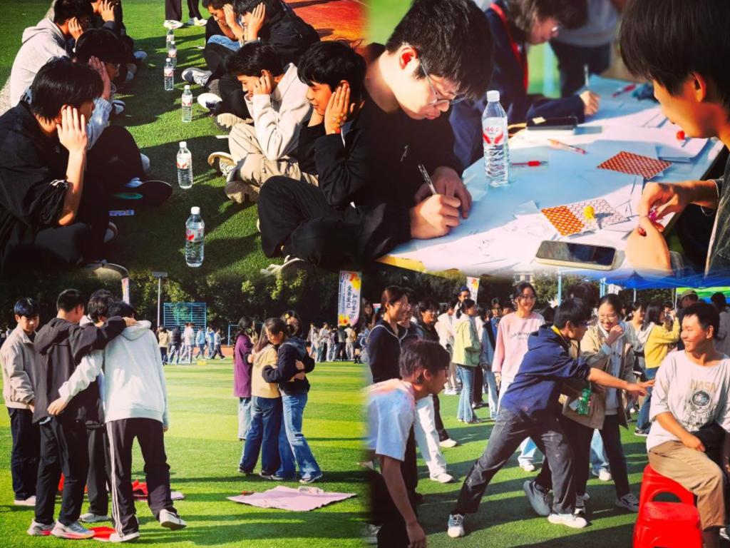 开幕式活动精彩纷呈,融合趣味与心理元素:“词语接龙”激发思维火花,“抢水瓶”考验反应与默契,“占领阵地”彰显团队精神,“123木头人”唤醒童年记忆。最受欢迎的“限时你画我猜”环节中,七人一组,一人执笔绘画,其余同学围坐草地,展开想象的翅膀。阳光下,一张张真挚的笑脸,成为这个秋日最动人的风景。“活动不仅让我认识了新朋友,也让我学会更好地觉察情绪、关爱自己。”一位新生在分享中说道。