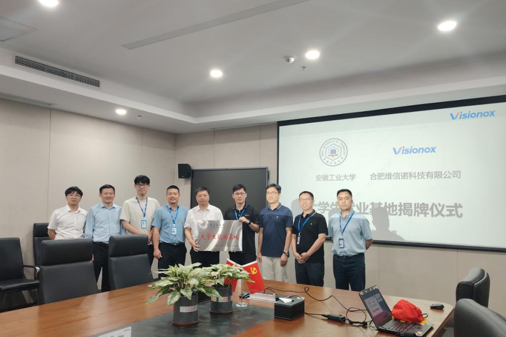 期间,学校就人才培养、实习实践基地建设、产学研合作等方面与企业进行了深入交流。王俊代表学校为双杰电气合肥有限公司总经理殷华新、人力资源总经理洪峰颁发了“就业创业领航导师”聘书,为合肥维信诺科技有限公司授牌“大学生就业基地”,并签订了人才培养与就业基地建设合作协议。