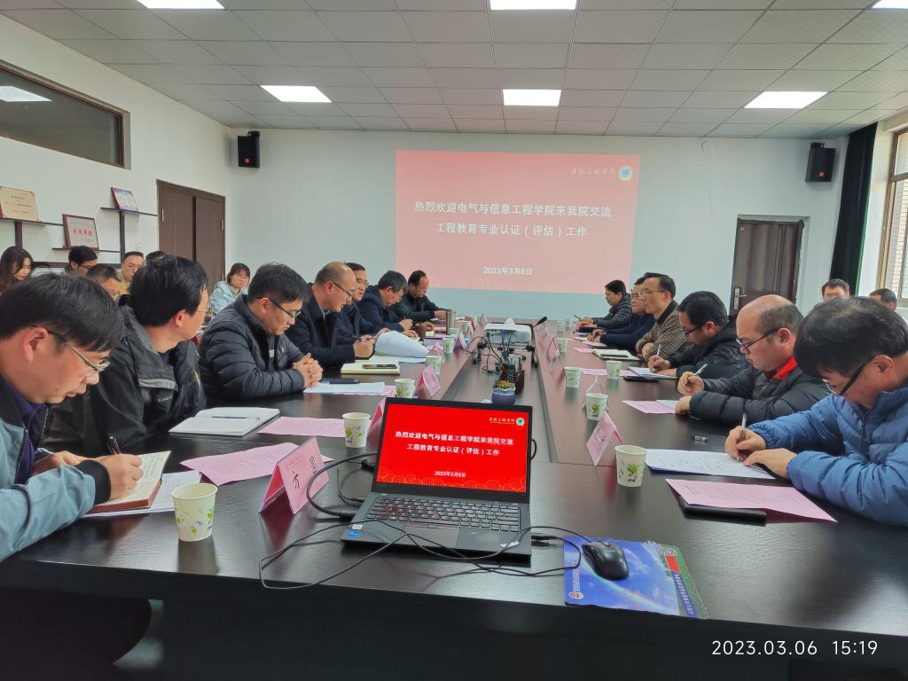 3月6日下午,电气与信息工程学院组织系室主任、部分支部书记赴建筑工程学院学习借鉴工程教育专业认证工作。参加会议的有教务处教学质量与教师能力发展科科长曹启定,建筑工程学院党委书记赵龙、副院长王颖之、陈德鹏、曹现雷以及各系室主任、专业教师、辅导员,电气与信息工程学院党委书记丁忠利、副院长夏玉钦、程木田、各系室主任以及支部书记代表。